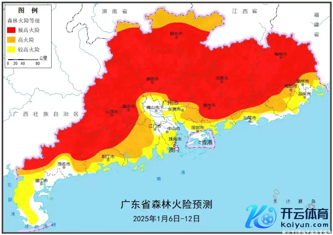 一周丛林火险趋势分析汇报欧洲杯体育 (2025年1月6日—12日) 一、总体趋势 本周,我省大部地区以辉煌干燥天气为主,无彰着降水天气。面前我省各地正处于冬种备耕时节,坐蓐性用火增多,要加强田园火源处分和设施农事用火。抽象接洽天气、林情、火源、社情和地势等身分,瞻望本周我省大部地区的丛林火险品级为较高火险(三级);其中粤东北部、粤北大部、粤西北部、珠三角大部的丛林火险品级为极高火险(五级)。 二、天气情况方面 改日10天(1月5日—14日)我省大部地区以辉煌干燥天气为主,粤东西南部、粤北西南部